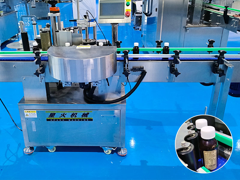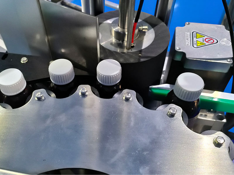 小型星盤自動貼標機核心部分為星盤式轉盤結構,配合供標系統、貼標系統、控制軟件的協同作業,能夠快速將產品貼上商家生產信息,使其產品更有辨識度。當產品通過輸送帶送至小型星盤自動貼標機的轉盤工位時,星盤上的定位夾具會精準的抓取商品并進行固定。它的貼標頭是由氣缸或伺服電機的帶動下,能夠快速、精準的將標簽貼在產品表面。對于市面上比較常見的飲料瓶、藥品、化妝品、噴霧劑、漱口水等圓形瓶子都能夠執行穩定的貼標動作。